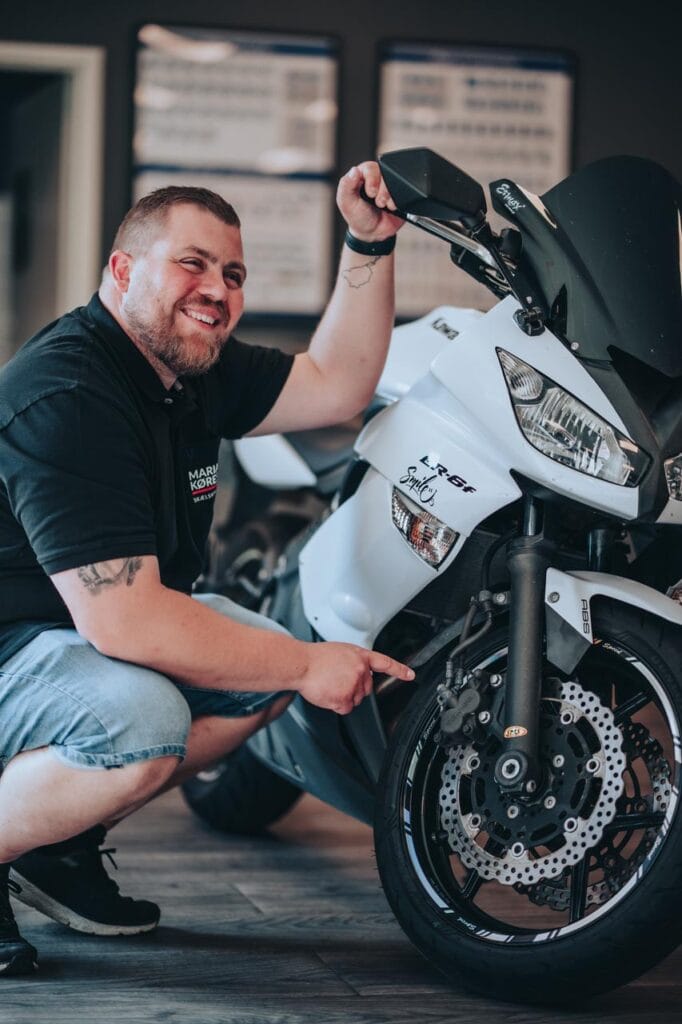 Læs flere her“Jeg afsluttede et forløb i nov.25 , jeg var kommet på et lynkursus, som var en fejl fra min side, da jeg kun havde siddet bagpå en mc 3 gange. Med Jeff og Marias hjælp til lidt ekstra timer bestod jeg første gang.