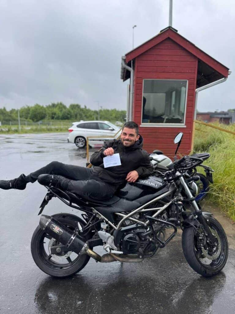 “Jeg afsluttede et forløb i nov.25 , jeg var kommet på et lynkursus, som var en fejl fra min side, da jeg kun havde siddet bagpå en mc 3 gange. Med Jeff og Marias hjælp til lidt ekstra timer bestod jeg første gang.